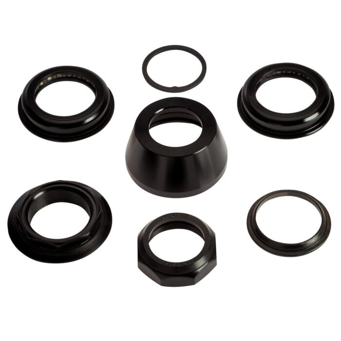 Komplett för gaffelrör 1 1/8″/ Ø28,6mm, lagerskålar Ø44mm, nedre kona Ø30mm. Byggnadshöjd med kåpa 29,8mm. Styrstam Ø25,4mm