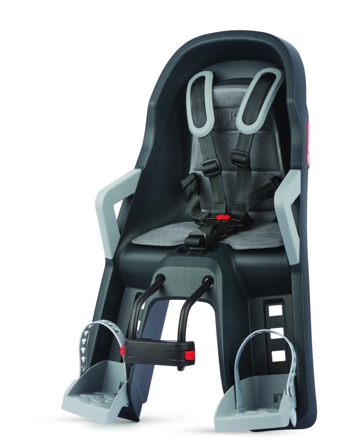 Babysits för rammontering på runda och ovala kronrör Ø22–40. Barnets vikt: 9 till 15 kg. Levereras med justerbar fempunktssäkerhetssele med vaddering, ökat sidoskydd, extra säkerhetsbälte, skydd och fasthållning av fötterna. 3 valbara placeringar för babysitsen.