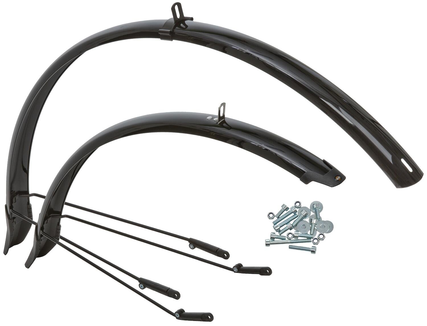 Komplettera din sportiga hybrid- eller gravel-cykel med extra skärmar för att hålla dig torr och fräsch även om underlaget inte är det. Skrämset fram och bak inklusive stag och skruvar för 28″ hjul med däckbredd upp till 40 mm. Kvalitetsskärmar med en konstruktion av aluminium och plast.