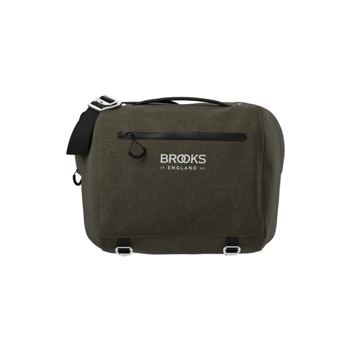 Brooks Scape Handlebar Compact Bag är en avtagbar cykelväska gjord av lätta, vattentäta material och allround vattentäta detaljer med ett diskret modernt utseende. Väskan är både idealisk som väska för långa resor eller pendling. Två aluminiumspännen i botten gör det snabbt och enkelt att justera väskans insida. Avslutad med lätta dubbla dragkedjor och ett Klick Fix®-fästesystem. Dessutom medföljer en axelrem för enkel transport när du är borta från cykeln, så att du enkelt kan använda den som crossbodyväska eller axelväska.
