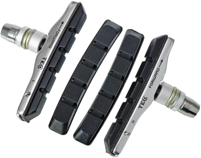V-bromsklossar med kassett, 70 mm och legerad hållare. Konkava och konvexa brickor för bättre vinkeljustering. Fiberförstärkt, friktionstålig gummiblandning, kompatibla med alla större V-bromssystem.