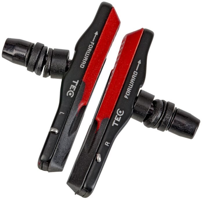 72 mm V-bromsklossar med kassett och allvädersblandning samt legerad hållare. Aquaguide-konstruktionen ger förbättrade prestanda vid bromsning på vått/torrt underlag Röd: Hög friktionstålighet vid torrt väder. Svart: Hög friktionstålighet vid vått väder. Prestanda när det är vått mycket nära bromsprestanda under torra förhållanden. Konkava och konvexa brickor för bättre vinkeljustering. Bullerfria och kompatibla med alla större V-bromssystem.