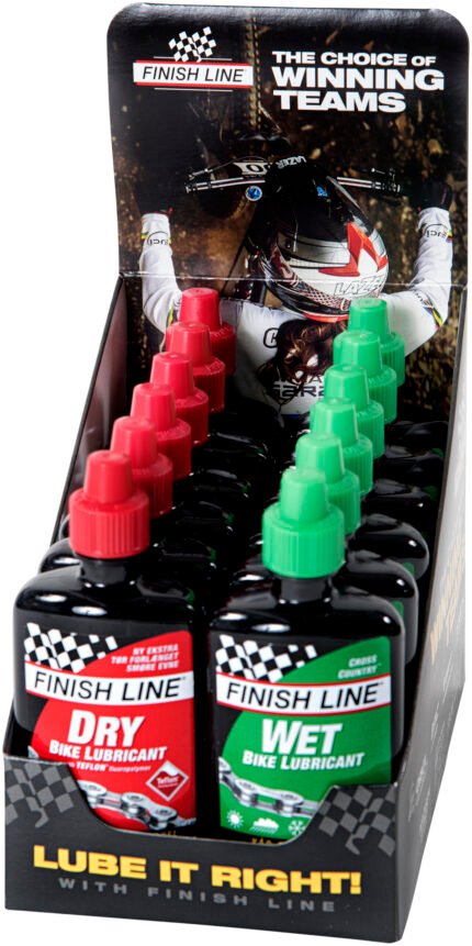 Display Finish Line Dry olja 6st/Wet 6st 120ml flaska Grön/Röd